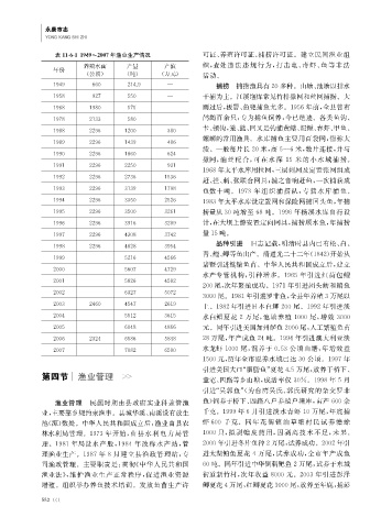 表1161 1949~2007年渔业生产情况 可证、养殖许可证、捕捞许可证。建立民间渔业组