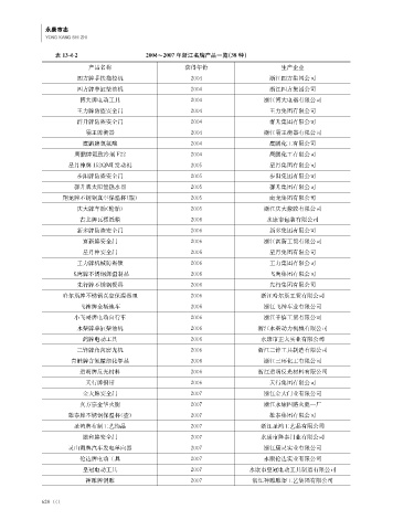 表1342 2004~2007年浙江名牌产品一览( 38种)