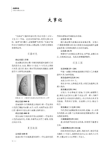 “ 大事记” 上起旧石器时代( 约公元前2万年), 用印纹硬陶器具盛装五谷杂粮。