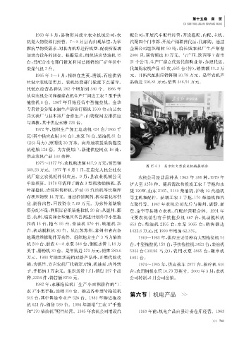 销,为溪岸、方岩农机厂代销犁刀轴、机油泵、内外转 1974~1985年,供应拖车2877台,粉碎机610