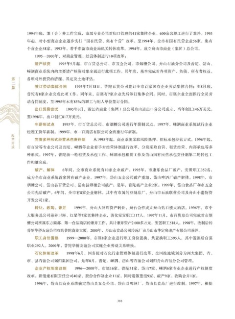 个营企业58家。1993年,着手准备市商业局机关转体改革。1994年,成立舟山市商业(集团)总公司。