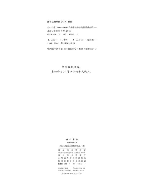 Ⅰ .① 舟… Ⅱ.① 舟… Ⅲ .① 舟山—地方志—