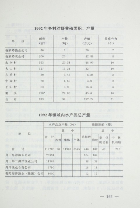 1992 年各村对虾养殖面积 、 产量 1992 年镇域 内 水 产 品 总 产 量