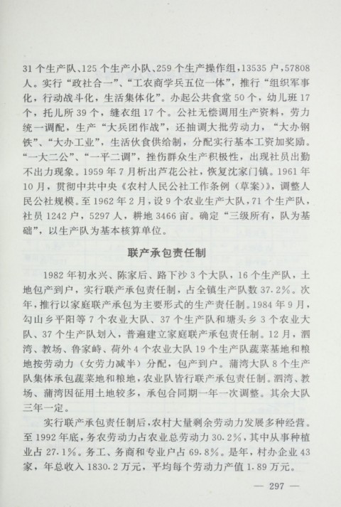 3 7 个 生 产 队 划 入 , 普 遍 建 立 家 庭 联产 承 包 责 任 制 1 2 月 , 泗