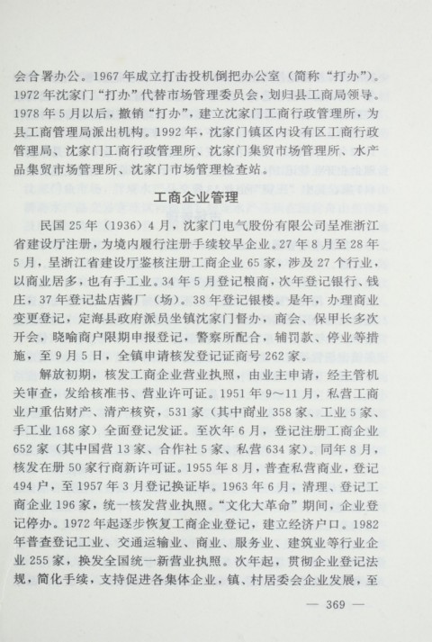 1 9 7 2 年沈 家 门 “ 打办 代 替市场管 理委 员 会 , 划 归 县 工 商 局领 导 。