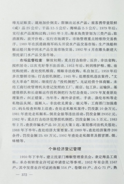 1 9 5 0 年 下半年 , 建立沈家 门 摊贩管 理委 员 会 , 隶定海县 工商