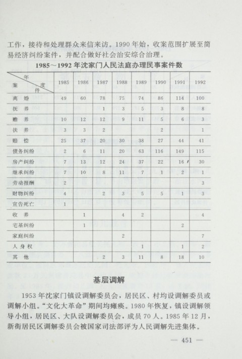 1 9 5 3 年沈家 门 镇设 调解委 员 会 , 居 民 区 、 村均 设调解 委 员 或